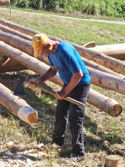 Der Schiltacher Floßmeister Hartmut Brückner zeigte den Jungflößern, wie die Stämme an den Enden behauen wurden.