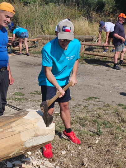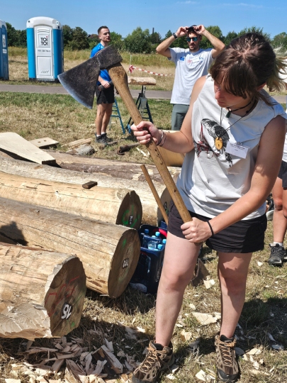 Der Floßbau bedeutete immer harte Arbeit. So wurden die Stämme traditionsgemäß angespitzt, um den Wasserwiderstand zu minimieren. Auch die Spanierin Alba Garcia Ortega bewies ihr Können beim Bau des Gefährtes.