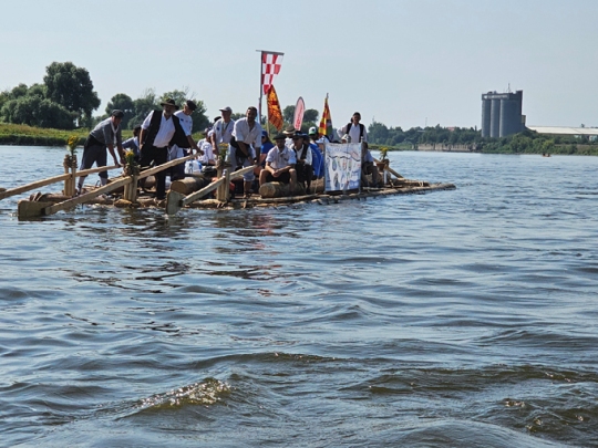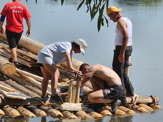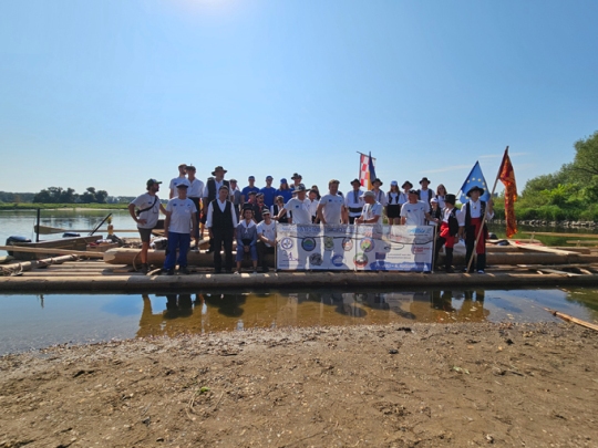 Unter großer Anteilnahme der Öffentlichkeit und Begleitung durch die Medien wurde das Gefährt in zwei Tagen mit traditionellen Methoden gefertigt, zu Wasser gelassen und am 1. August 2024 auf der Elbe über eine Strecke von 16 Kilometern gefahren. Nach einer, von Kapitän Dietmar Felke sicher durch die Enge am Domfelsen gesteuerten vierstündigen Fahrt machte die internationale Besatzung am Hanseterminal fest. Das Floß soll zum Deutschen Flößertag 2025 in Magdeburg eine Renaissance erfahren und damit den Erhalt der traditionellen Floßbaukunst an der Elbe weiter dokumentieren. Die Jugendlichen aus Rumänien, Spanien, Slowenien, Litauen, Italien und Deutschland verabschiedeten sich begeistert und versprachen, die Idee der weiteren internationalen Zusammenarbeit in ihren Heimatvereinen zu verbreiten. Der einheitliche Tenor der Beteiligten war: Das werden wir unbedingt wiederholen, an anderen Orten und in anderen Ländern! Als Fazit bleibt: „Magdeburg war eine gelungene Wahl für das erste multinationale Flößer-Camp und maßstabsetzend“.