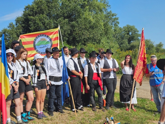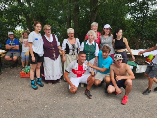 Für das Foto mit der Trachtengruppe des Heimatvereins Beyendorf/Sohlen stellten sich Jungflößerinnen und Flößer aus fünf Ländern gern an die Seite der Spenderinnen.