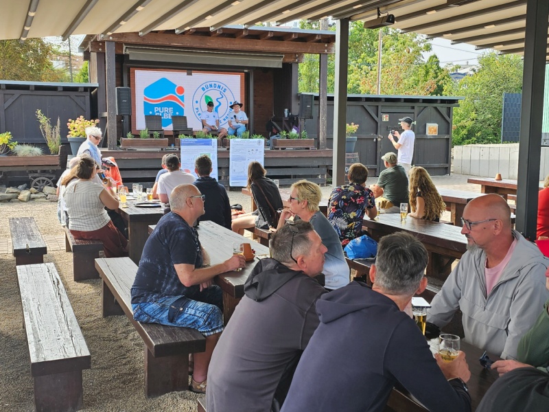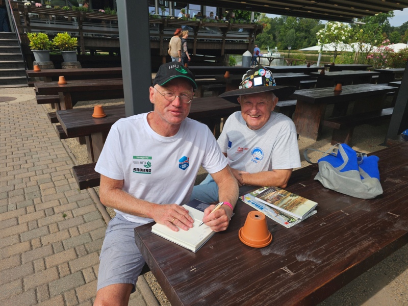 Eine nicht alltägliche Geschichte gab es am 31. August 2024 beim Mückenwirt. Professor Andreas Fath machte hier Station. Der Schwimmer hatte die Elbe seit dem 17. August 2024 bis Magdeburg durchschwommen und wird den Fluss weiter bis nach Cuxhaven hinab schwimmend erleben. Mit dieser ungewöhnlichen, sportlich anspruchsvollen Aktion macht der Wissenschaftler auf die drängendsten Probleme des Gewässer- und Umweltschutzes aufmerksam. Er konnte bei seinen spektakulären Aktionen bereits viele Drittmittel für die Forschung einsammeln. So durchschwamm der Furtwänger Wissenschaftler bereits Donau, Rhein und Flüsse in den USA. Auf seinen 23 Stationen entlang der Elbe werden bei jedem Stopp Wasserproben entnommen und auch aus den Nebenflüssen Proben gesammelt. Diese werden in Laboren untersucht und ausgewertet. Auch wenn die Ergebnisse der Elbeproben erst noch erstellt werden, so doch sein erstes Fazit: "Die Elbe ist (bis Magdeburg Anm. d.Red.) wesentlich sauberer als die Seine in Paris". Das dies sich auch weiterhin verbessert, daran ist auch die Doktorandin der Universität Freiburg/i.Br., Johanna Greinke interessiert, die einen sorgsamen Umgang mit Pharmazeutika und chemischen Abfallprodukten anmahnt, deren Einträge in die Flüsse sich ebenfalls sehr schädlich auf die Umwelt auswirken. Eine Reihe von Fragen von Gästen des Mückenwirts konnten im Verlauf dieses interessanten Workshops geklärt werden, sodass Flößer-Fachgruppenleiter Frank Thiel beim Dank an den unermüdlichen Schwimmer für eine gesunde Wasserbilanz resümieren konnte: Danke lieber Andreas Fath, die anwesenden Magdeburger haben deinen Appell verstanden.