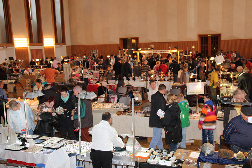 Eine Tombola von Dr. Fricke und Annelies Fricke verleiten zum Loskauf. Vierzig Aussteller aus ganz Deutschland und Polen präsentieren ihre Schmuckstücke, Neuerwerbungen und Funde aus diesem Jahr. Fachleute der Fachgruppe Mineralogie und Geologie des Kultur- und Heimatvereins Magdeburg e.V. und des Naturkundemuseums Magdeburg helfen ihnen beim Bestimmen ihrer Funde.