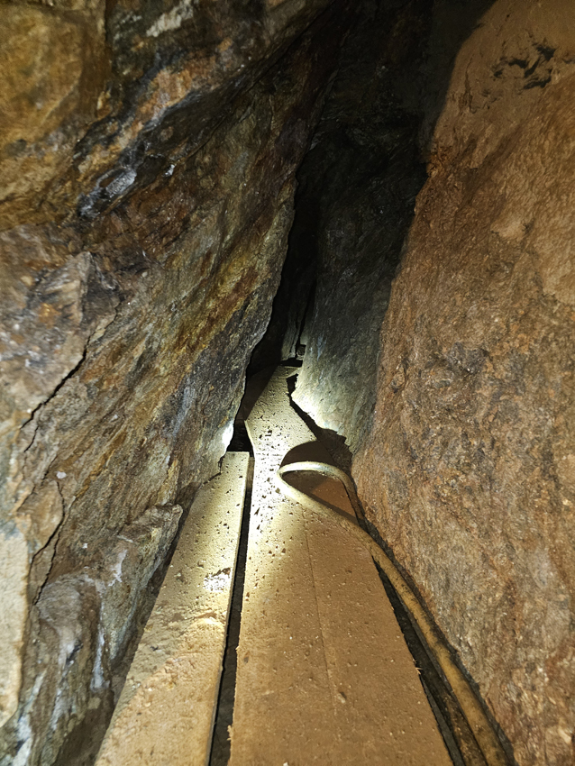 Das Erlebnis: Die Befahrung eines Altstollens Altstollen (50-70cm breit und stellenweise 1,5 m hoch über viele Meter lang.