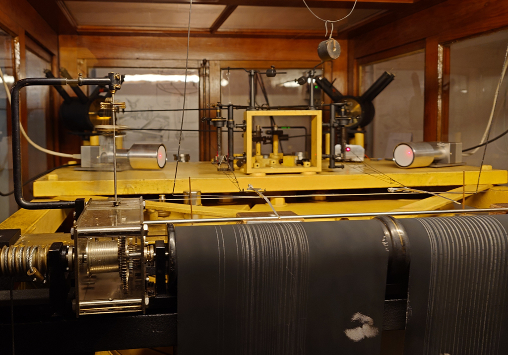 Etwa so alt wie die Erdbebenwarte selbst und seit dem 1. Januar 1903 in Dauerbetrieb ist dieser Seismograph.
