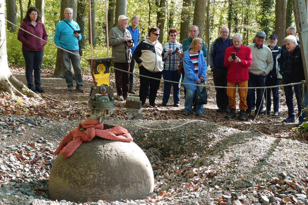 Die Kugen hat eine Masse von 4 Tonnen. Siewird bei Bedarf hochgezogen und fallen gelassen. Wie das aussieht, zeigt das folgende Video.