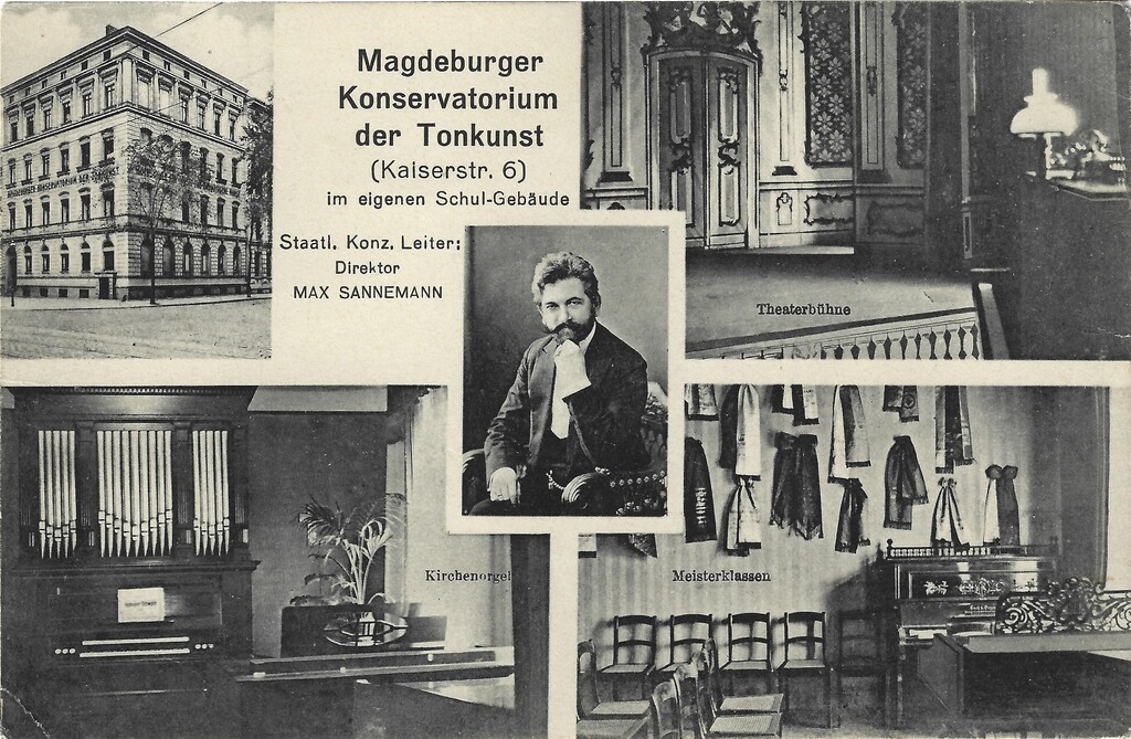 Max Sannemann (1867-1924) errichtete 1894 das Magdeburger Konservatorium für Tonkunst mit einer eigenen Musikschule an der er und andere Komponisten und Musiker lehrten.